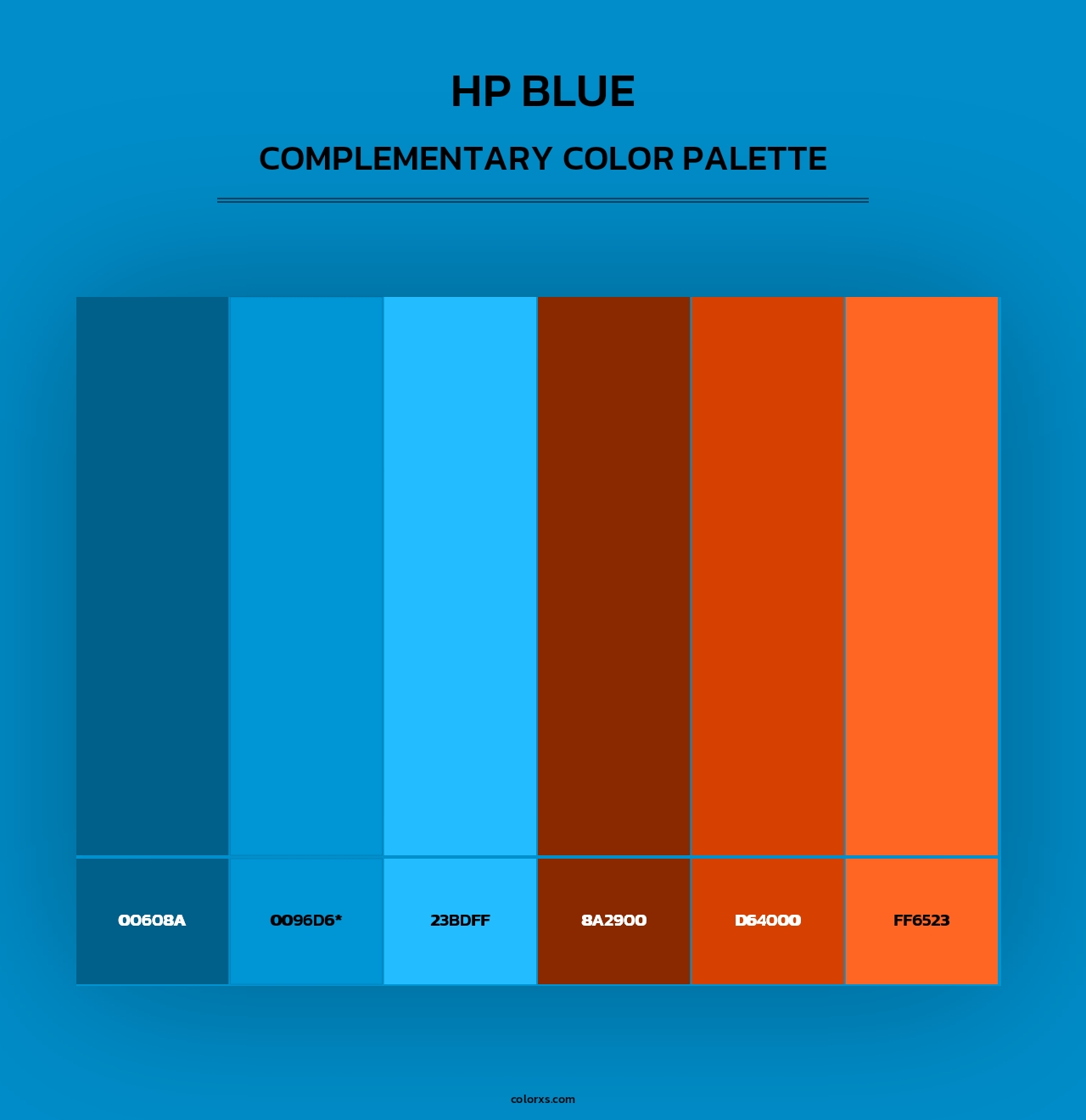 HP Blue color palettes. Find what colors go with HP Blue color palettes. Explore monochromatic, analogous, complementary schemes. Inspiring color palette and combination for your next design.
