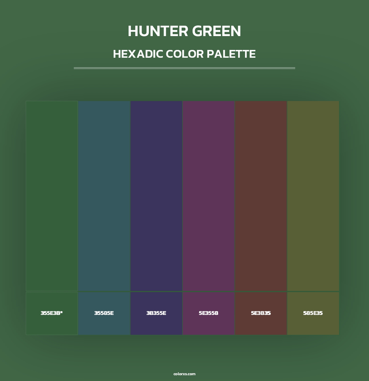 Hunter Green color palettes. Find what colors go with Hunter Green color palettes. Explore monochromatic, analogous, complementary schemes. Inspiring color palette and combination for your next design.