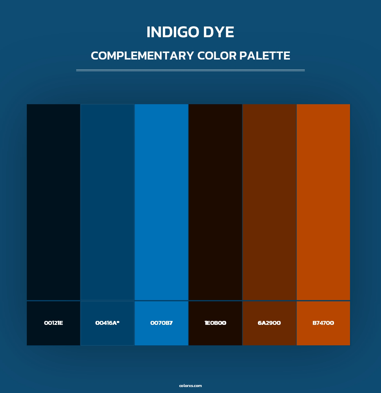 Indigo Dye color palettes. Find what colors go with Indigo Dye color palettes. Explore monochromatic, analogous, complementary schemes. Inspiring color palette and combination for your next design.