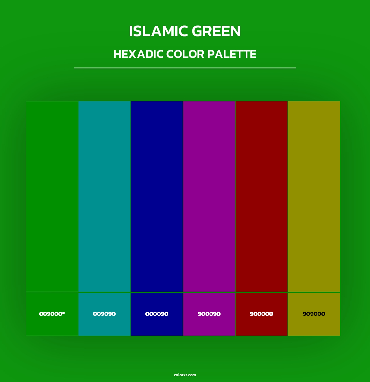 Islamic Green color palettes. Find what colors go with Islamic Green color palettes. Explore monochromatic, analogous, complementary schemes. Inspiring color palette and combination for your next design.