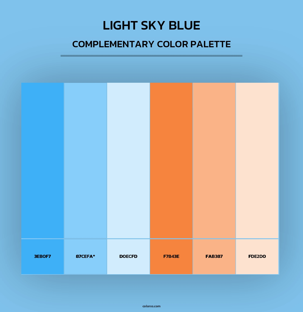 Light Sky Blue color palettes. Find what colors go with Light Sky Blue color palettes. Explore monochromatic, analogous, complementary schemes. Inspiring color palette and combination for your next design.