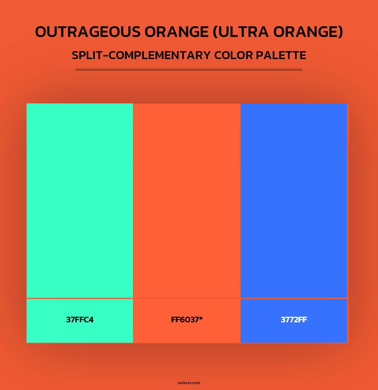 Outrageous Orange (Ultra Orange) color palettes. Find what colors go with Outrageous Orange (Ultra Orange) color palettes. Explore monochromatic, analogous, complementary schemes. Inspiring color palette and combination for your next design.