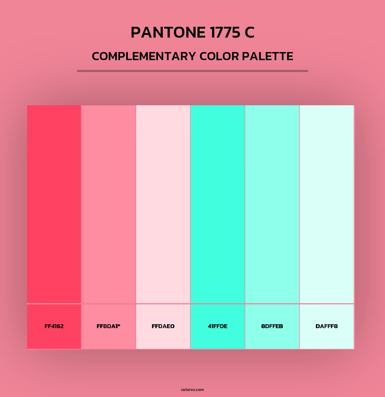 PANTONE 1775 C color palettes. Find what colors go with PANTONE 1775 C color palettes. Explore monochromatic, analogous, complementary schemes. Inspiring color palette and combination for your next design.