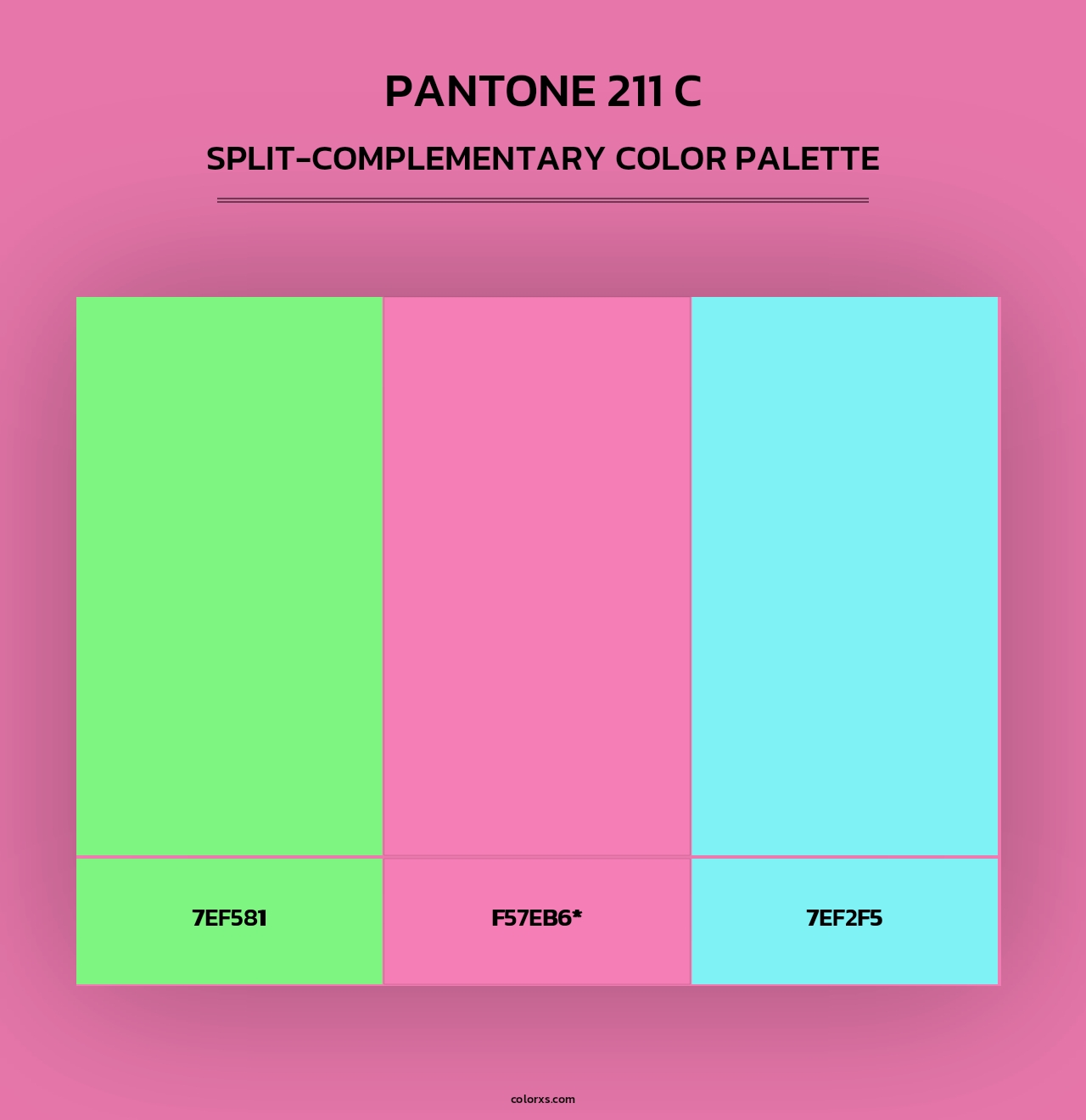 PANTONE 211 C color palettes. Find what colors go with PANTONE 211 C color palettes. Explore monochromatic, analogous, complementary schemes. Inspiring color palette and combination for your next design.
