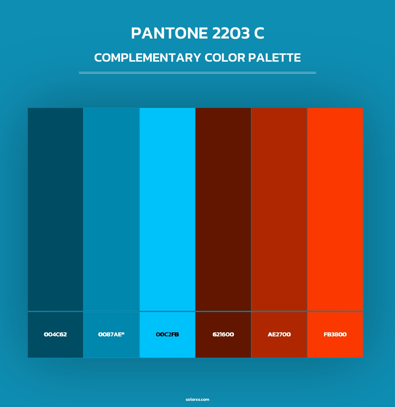 PANTONE 2203 C color palettes. Find what colors go with PANTONE 2203 C color palettes. Explore monochromatic, analogous, complementary schemes. Inspiring color palette and combination for your next design.