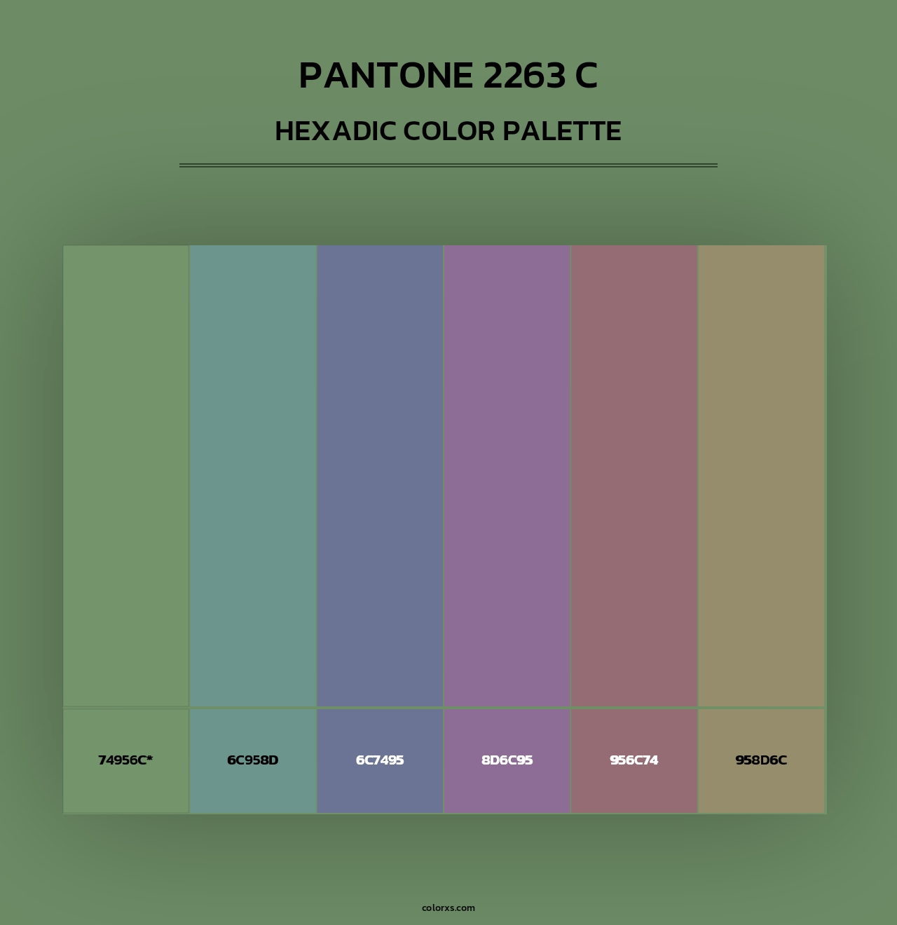 PANTONE 2263 C color palettes. Find what colors go with PANTONE 2263 C color palettes. Explore monochromatic, analogous, complementary schemes. Inspiring color palette and combination for your next design.