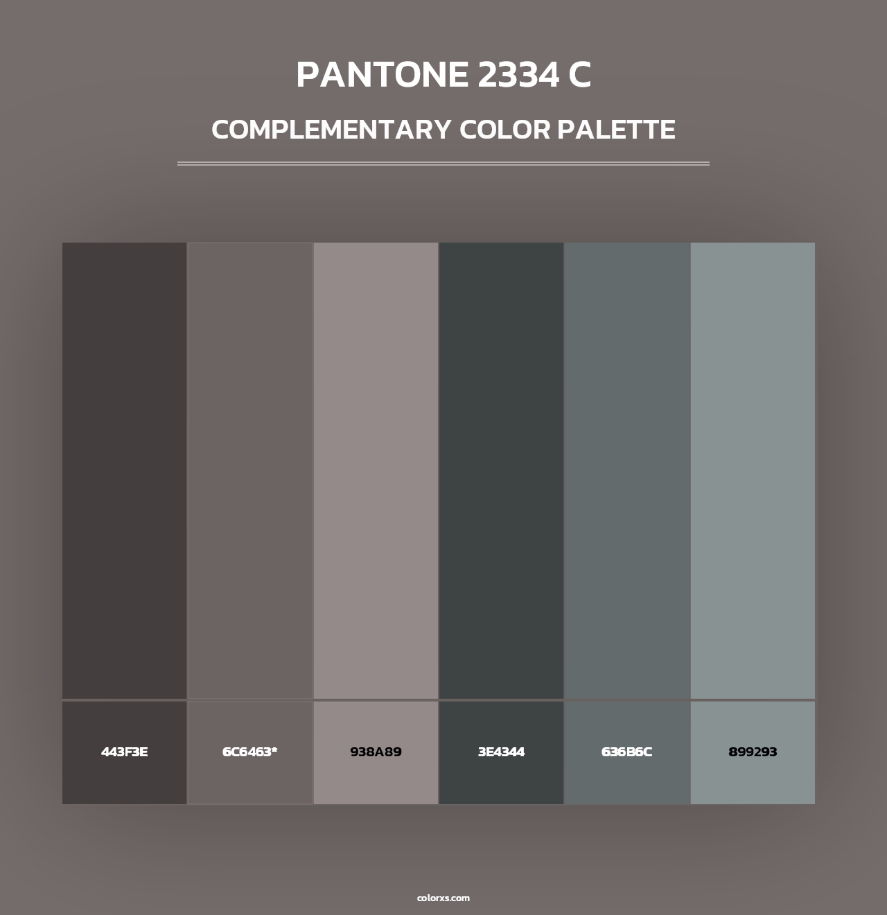 PANTONE 2334 C color palettes. Find what colors go with PANTONE 2334 C color palettes. Explore monochromatic, analogous, complementary schemes. Inspiring color palette and combination for your next design.