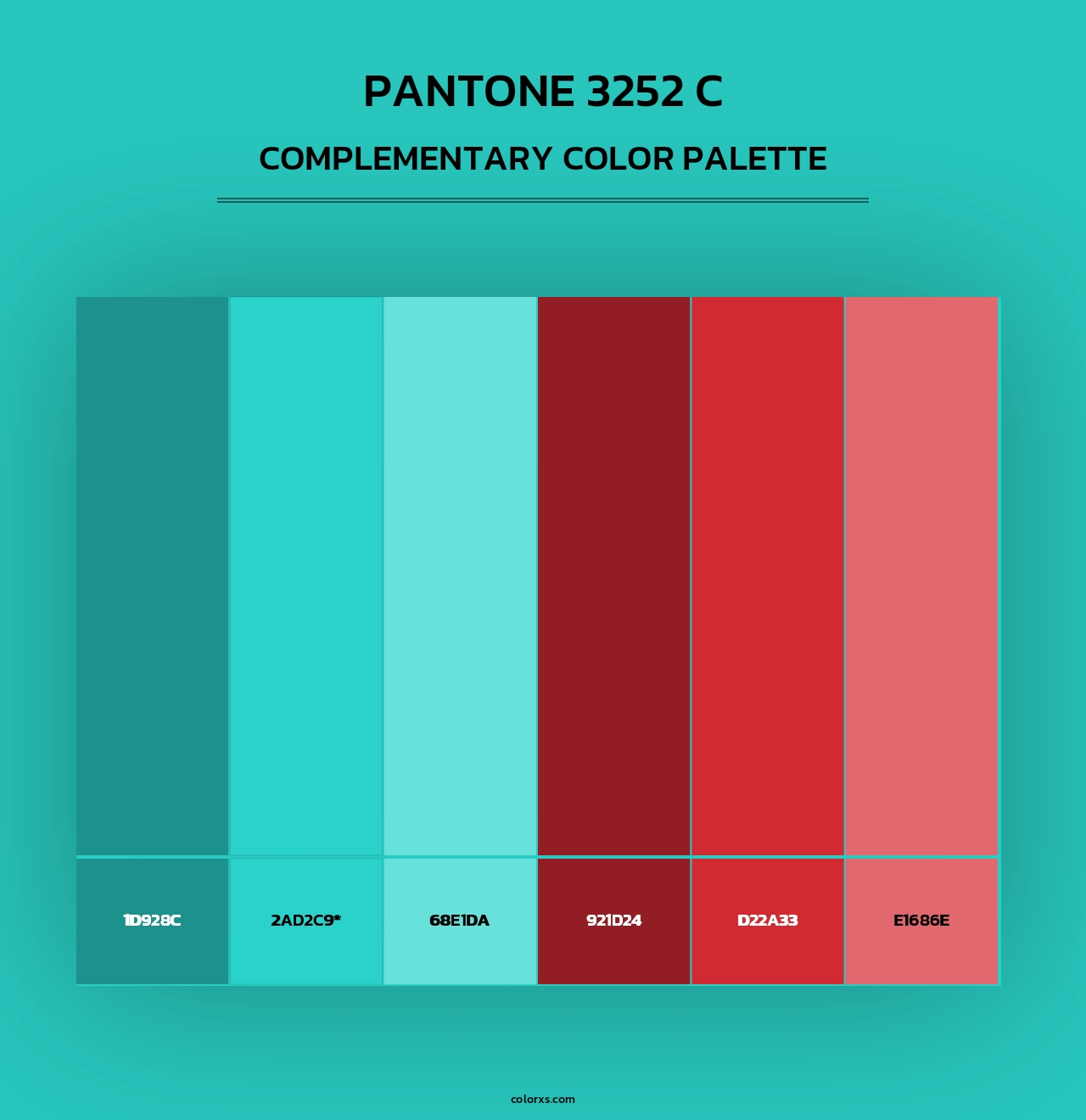 PANTONE 3252 C color palettes. Find what colors go with PANTONE 3252 C color palettes. Explore monochromatic, analogous, complementary schemes. Inspiring color palette and combination for your next design.