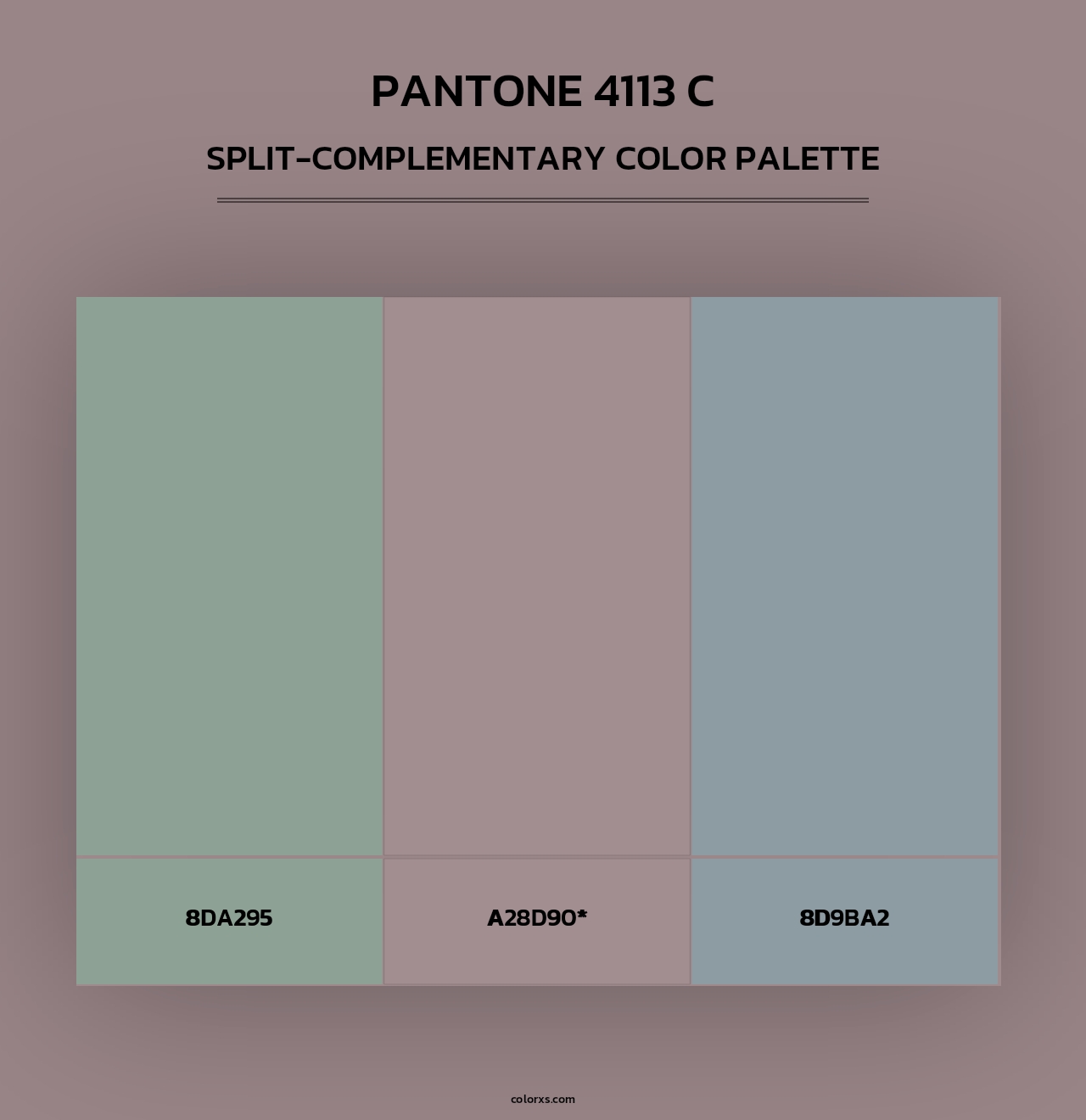 PANTONE 4113 C color palettes. Find what colors go with PANTONE 4113 C color palettes. Explore monochromatic, analogous, complementary schemes. Inspiring color palette and combination for your next design.