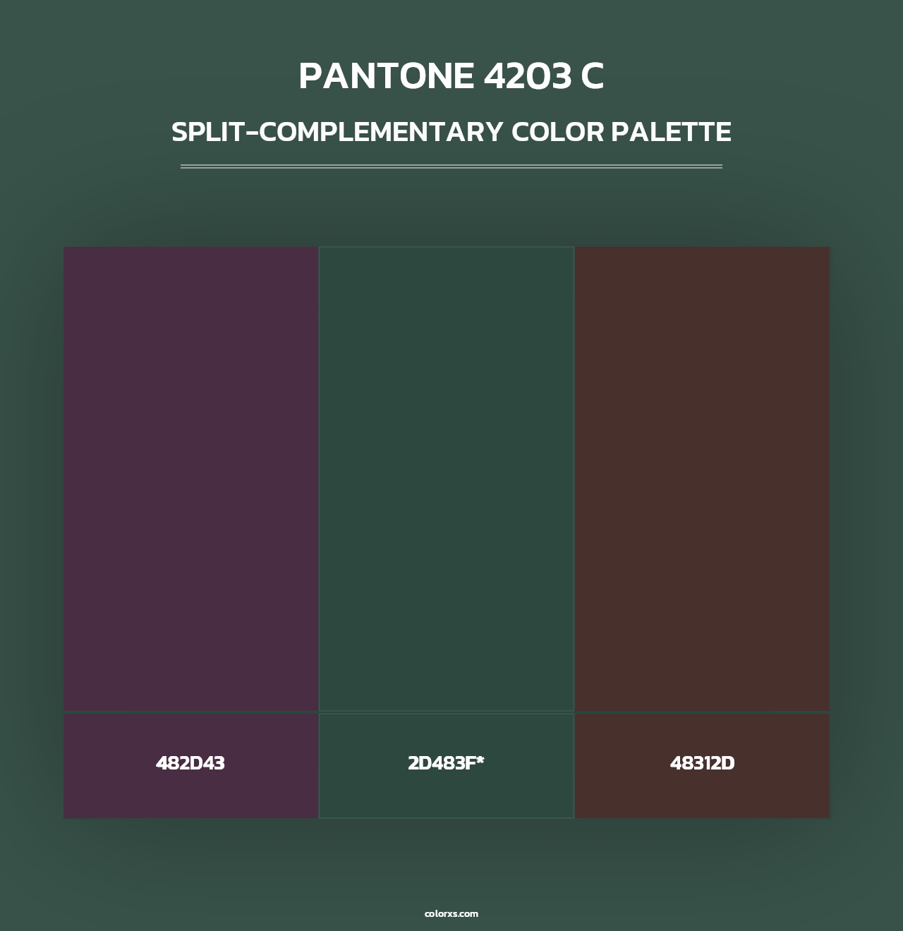 PANTONE 4203 C color palettes. Find what colors go with PANTONE 4203 C color palettes. Explore monochromatic, analogous, complementary schemes. Inspiring color palette and combination for your next design.