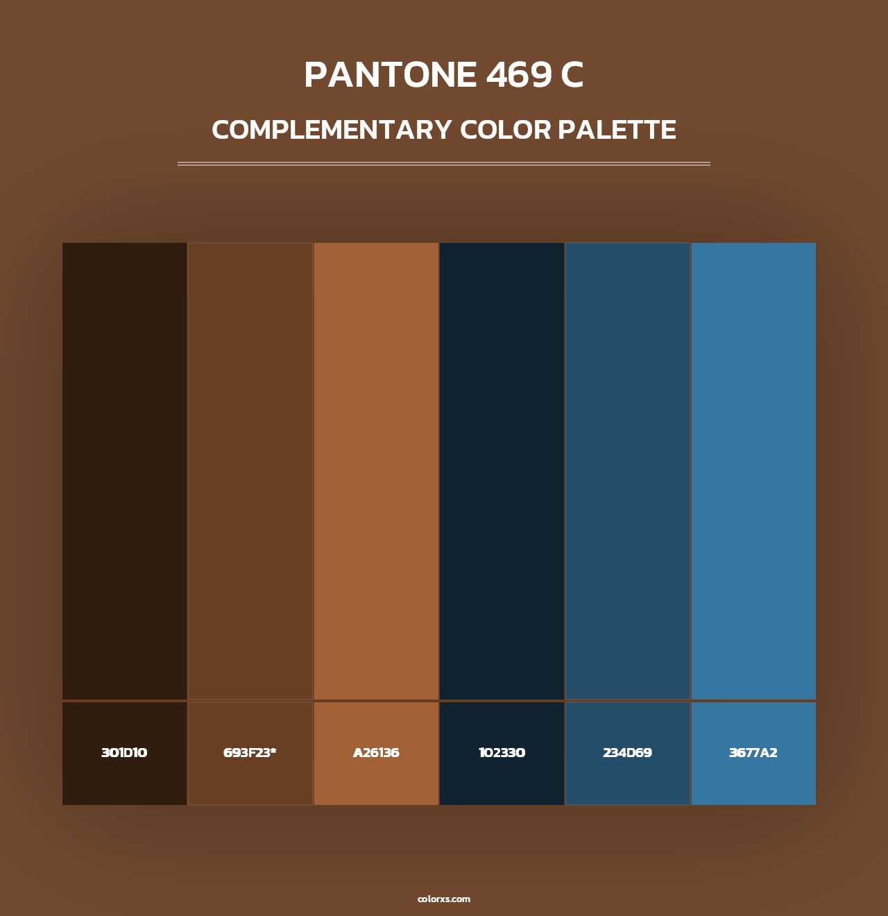 PANTONE 469 C color palettes. Find what colors go with PANTONE 469 C color palettes. Explore monochromatic, analogous, complementary schemes. Inspiring color palette and combination for your next design.