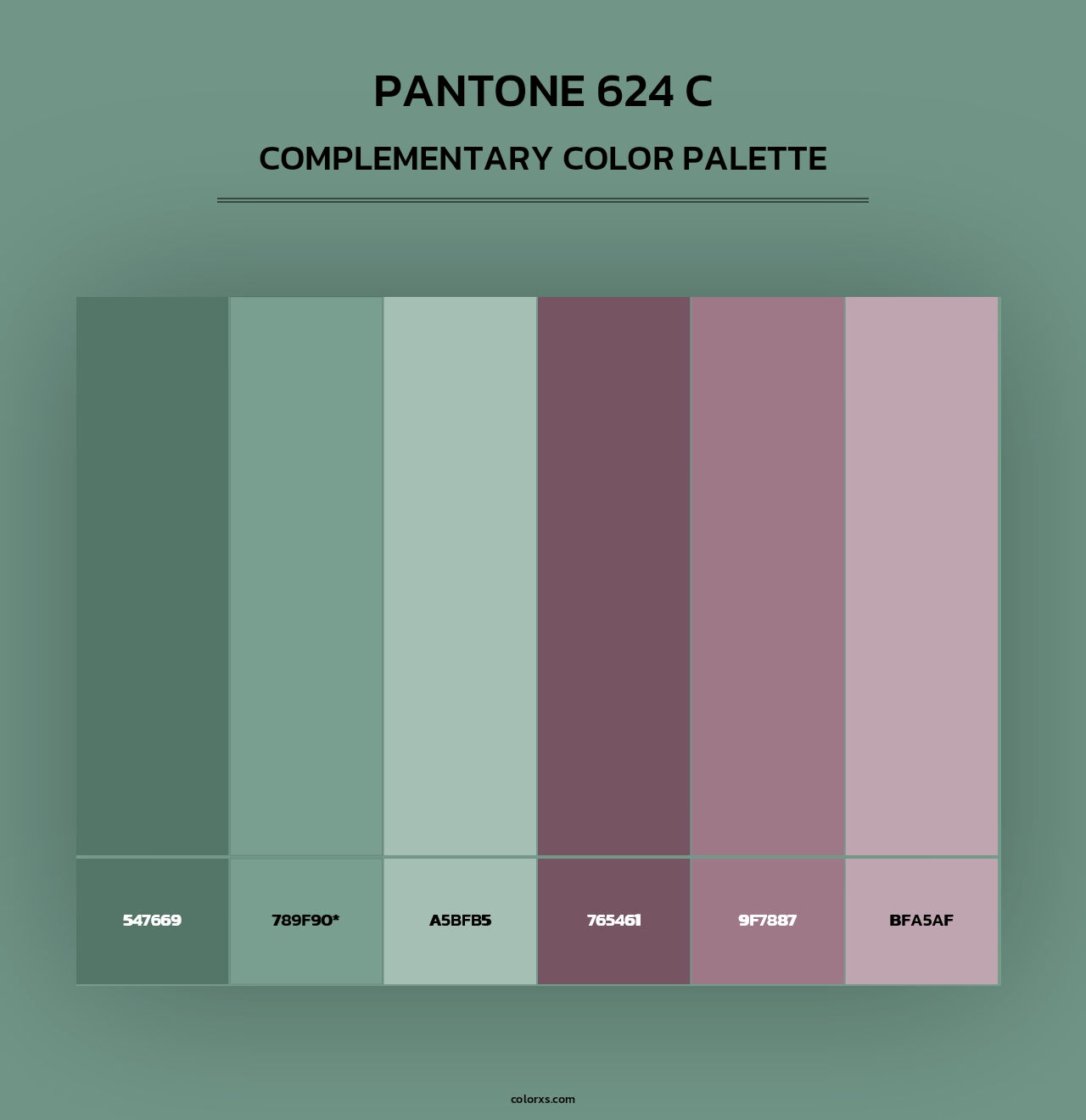 PANTONE 624 C color palettes. Find what colors go with PANTONE 624 C color palettes. Explore monochromatic, analogous, complementary schemes. Inspiring color palette and combination for your next design.