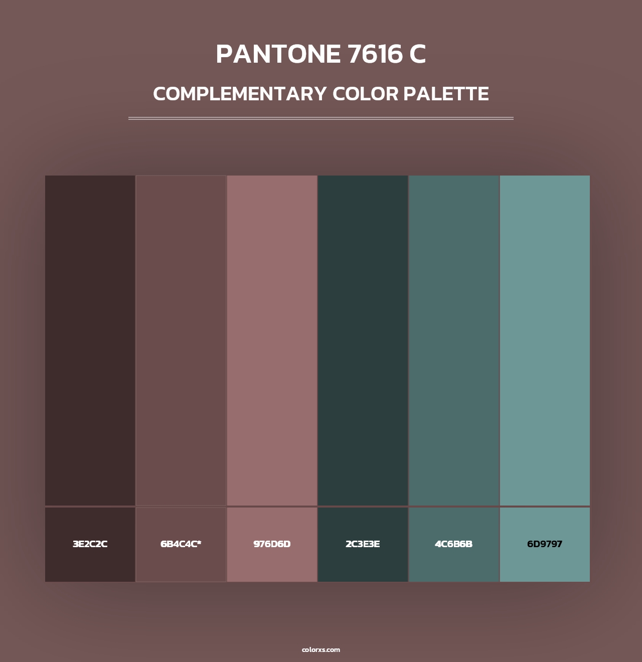 PANTONE 7616 C color palettes. Find what colors go with PANTONE 7616 C color palettes. Explore monochromatic, analogous, complementary schemes. Inspiring color palette and combination for your next design.