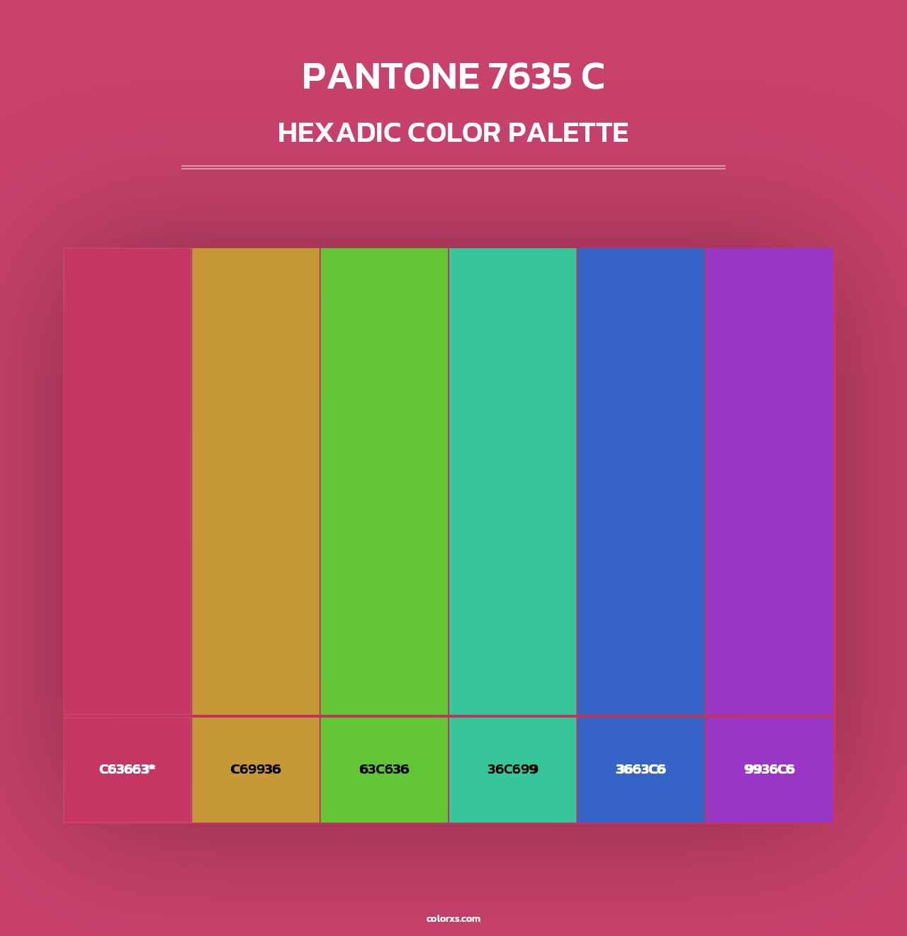 PANTONE 7635 C color palettes. Find what colors go with PANTONE 7635 C color palettes. Explore monochromatic, analogous, complementary schemes. Inspiring color palette and combination for your next design.