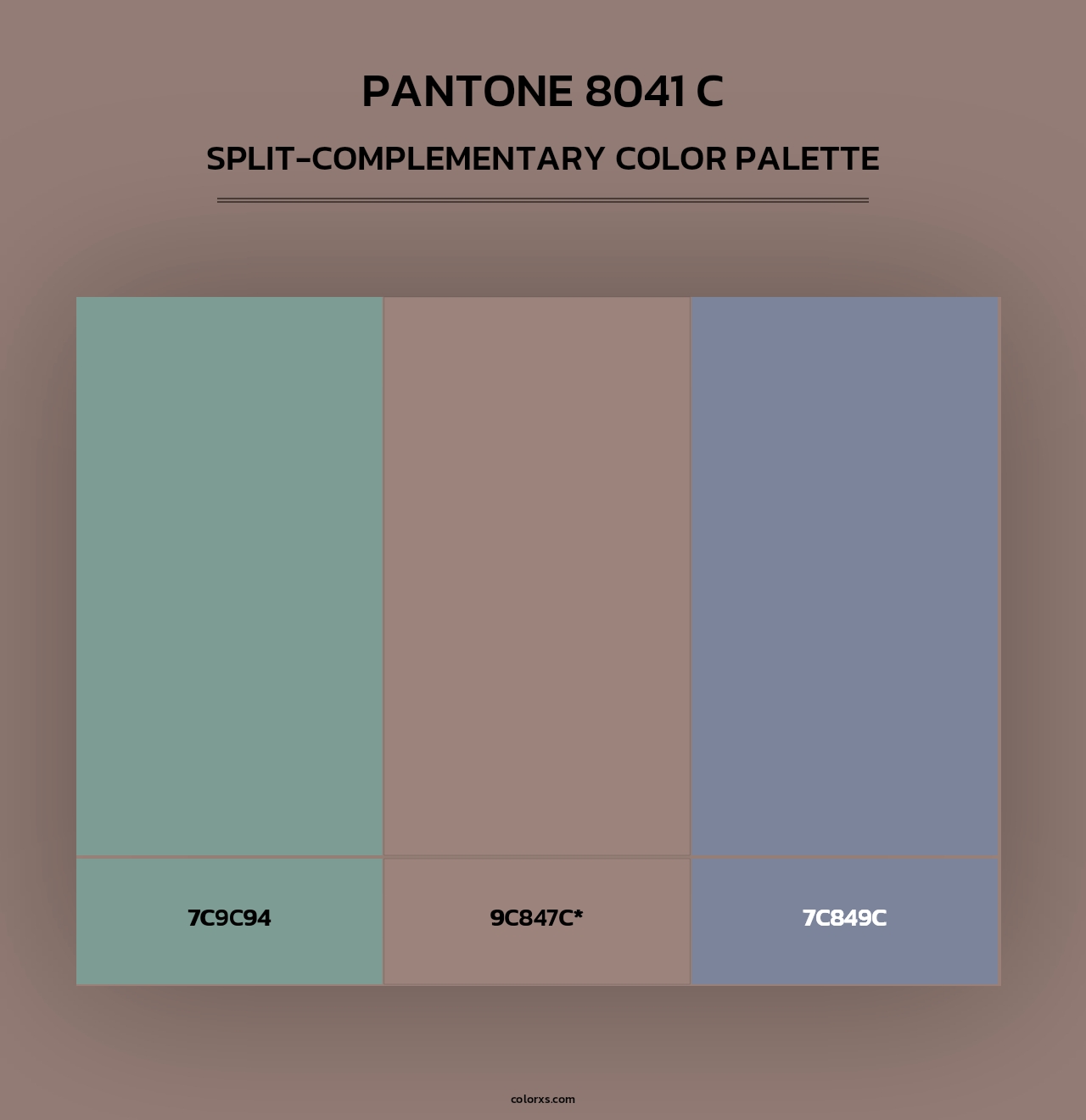 PANTONE 8041 C color palettes. Find what colors go with PANTONE 8041 C color palettes. Explore monochromatic, analogous, complementary schemes. Inspiring color palette and combination for your next design.