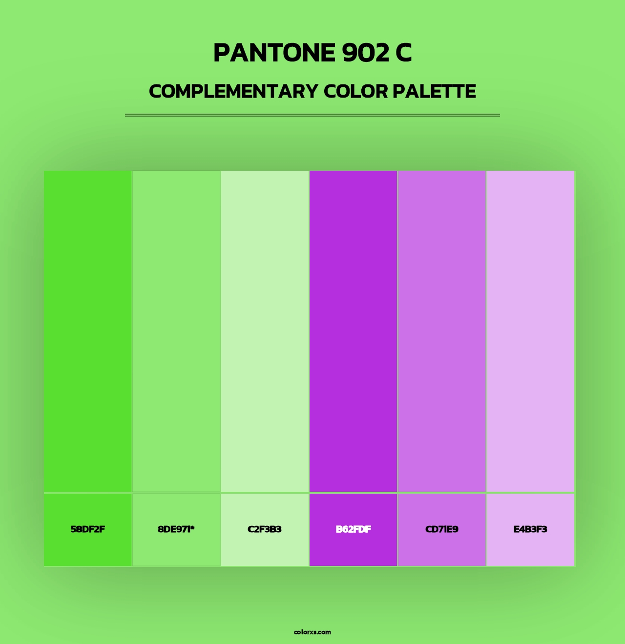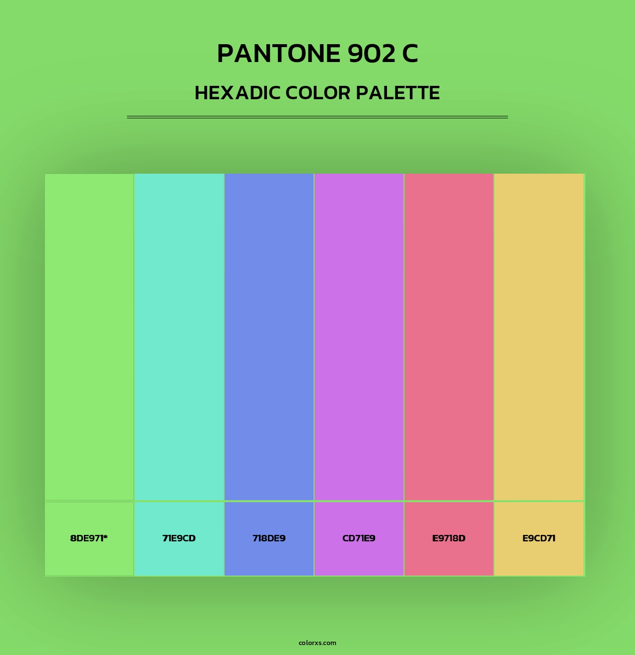 PANTONE 902 C color palettes. Find what colors go with PANTONE 902 C color palettes. Explore monochromatic, analogous, complementary schemes. Inspiring color palette and combination for your next design.