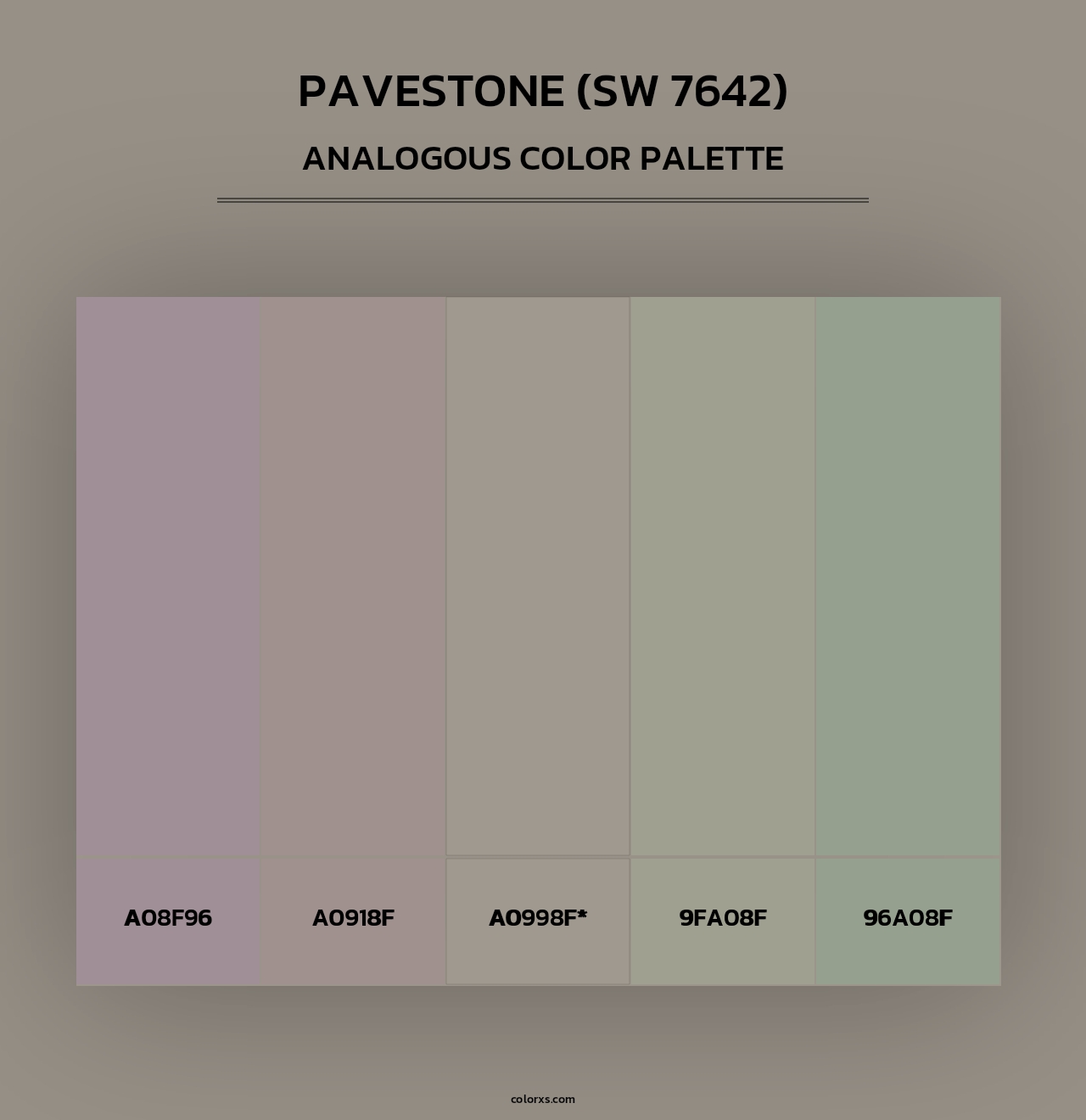 Sherwin Williams Pavestone (SW 7642) Paint coordinating colors and palettes . Find what colors go with Sherwin Williams Pavestone (SW 7642) Paint coordinating colors and palettes . Explore monochromatic, analogous, complementary schemes. Inspiring color palette and combination for your next design.
