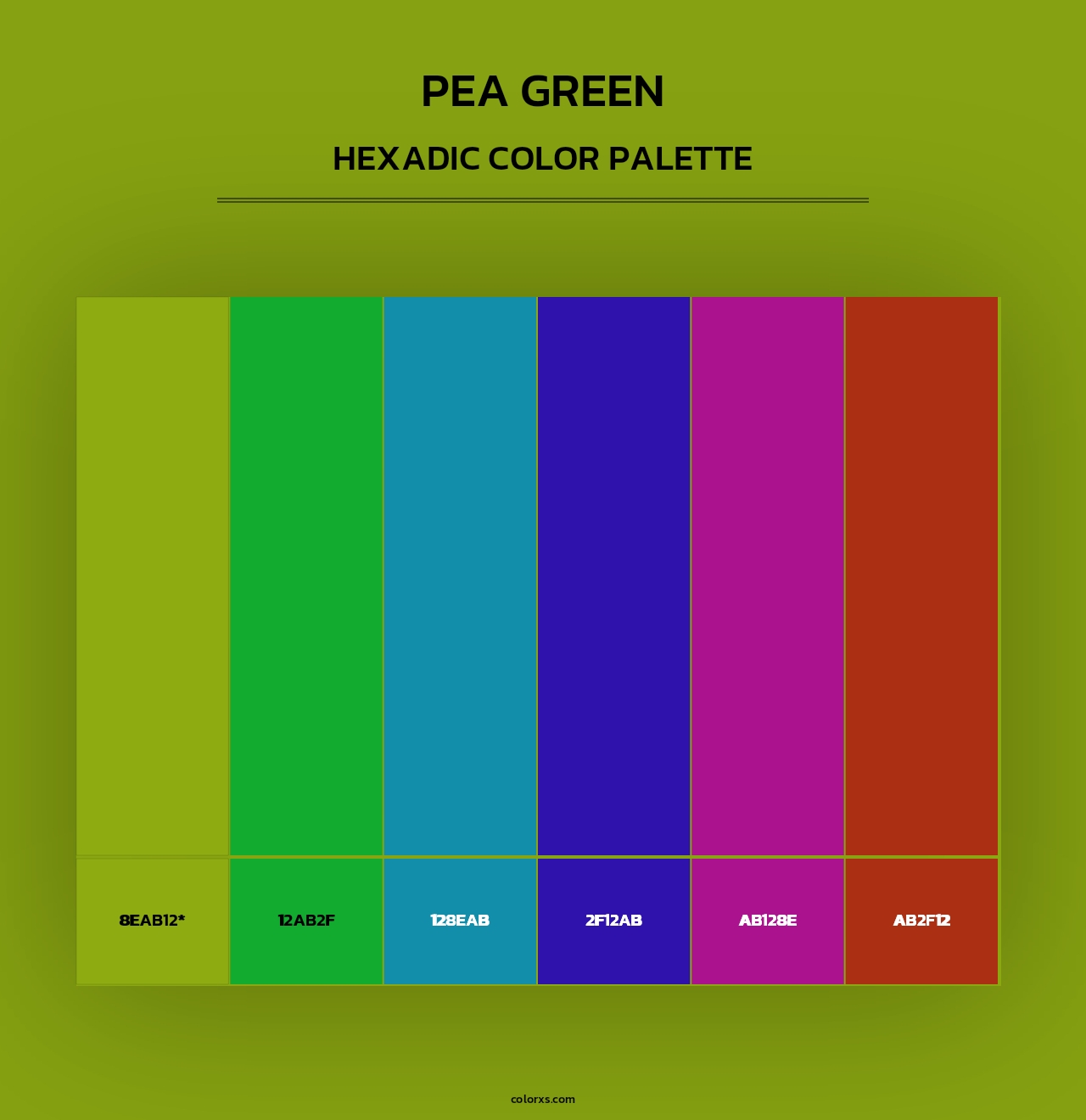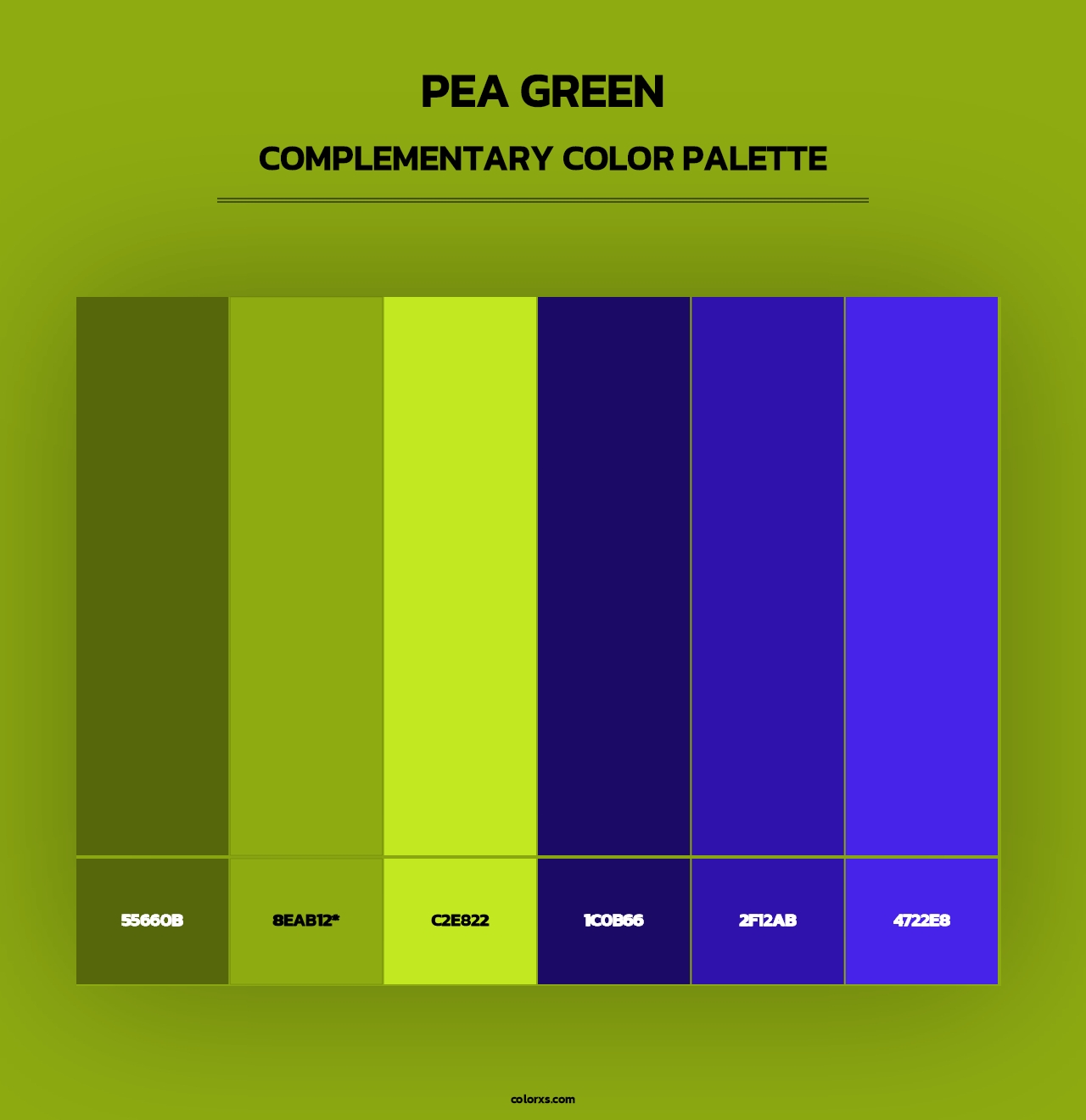 Pea Green color palettes. Find what colors go with Pea Green color palettes. Explore monochromatic, analogous, complementary schemes. Inspiring color palette and combination for your next design.