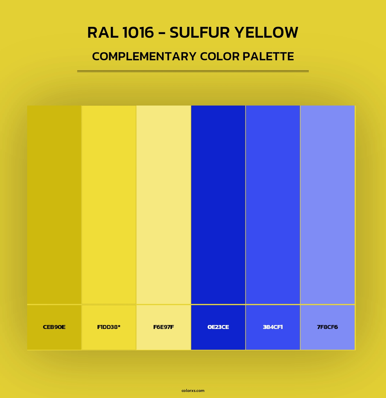 RAL 1016 - Sulfur Yellow color palettes. Find what colors go with RAL 1016 - Sulfur Yellow color palettes. Explore monochromatic, analogous, complementary schemes. Inspiring color palette and combination for your next design.