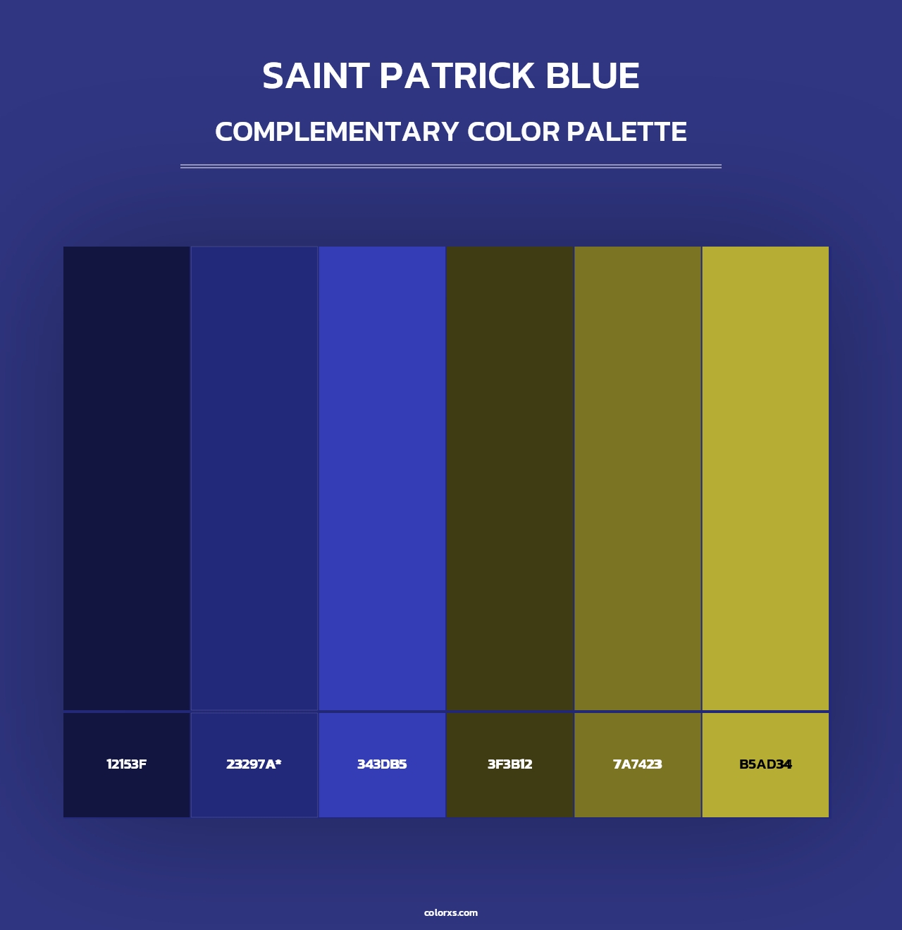 Saint Patrick Blue color palettes. Find what colors go with Saint Patrick Blue color palettes. Explore monochromatic, analogous, complementary schemes. Inspiring color palette and combination for your next design.