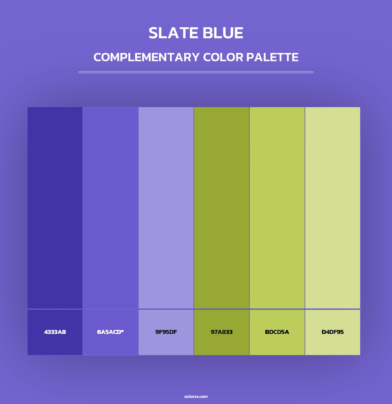 Slate Blue color palettes. Find what colors go with Slate Blue color palettes. Explore monochromatic, analogous, complementary schemes. Inspiring color palette and combination for your next design.