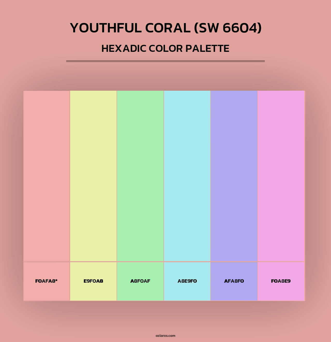 Sherwin Williams Youthful Coral (SW 6604) Paint coordinating colors and palettes . Find what colors go with Sherwin Williams Youthful Coral (SW 6604) Paint coordinating colors and palettes . Explore monochromatic, analogous, complementary schemes. Inspiring color palette and combination for your next design.